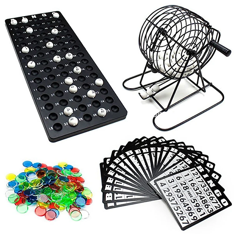 - Kích thước lồng sắt lớn với tổng số bi bingo là 75 , tổng số tờ bingo là 18 , 150 nút bingo nhựa và 1 bảng lưu cho bạn 1 game thật đông vui và náo nhiệt.