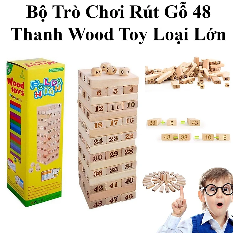 Bộ Trò Chơi Rút Gỗ 48 Thanh Wood Toy Loại Lớn (Hộp Vàng)