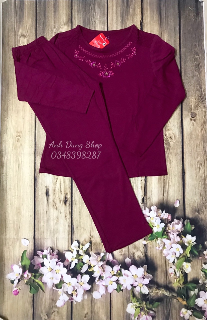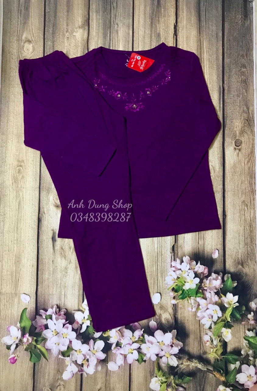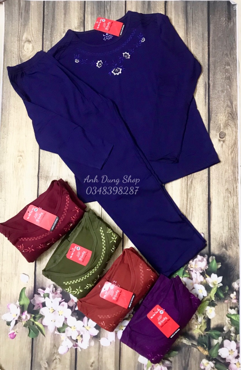 Nhà e mới ra mẫu và đang may hàng ĐỒ BỘ NỮ TRUNG NIÊN quần áo trung niên cho mẹ mặc thu đông rồi ạ. Các chị cứ yên tâm mua QUẦN ÁO TRUNg NIÊN tặng mẹ tặng bà ạ! BỘ MẶC NHÀ TRUNG NIÊN Chất thun cotton co giãn thoải mái, ấm, giặt không bài xù, quay máy giặt không dão. Màu: nâu tây, hồng cẩm, xanh rêu, tím than, đỏ đô, cam cà rốt đẹp Size vẫn như cũ đủ 3 size cho người 48 kg - 65kg Size XXL: 48kg - 52 kg tùy chiều cao của mẹ với vòng ngực 90cm, bụng quanh rốn 85cm Size XXXL: 53kg- 59kg tùy chiều cao của mẹ với vòng ngực 94cm, bụng quanh rốn 90cm Size Đại: 60kg - 65 kg tùy chiều cao của mẹ với vòng ngực 99cm, bụng quanh rốn 96cm Size theo cân nặng chỉ là ước chừng với chiều cao 1m55-m62. Việc mua size phù hợp với người mặc còn phụ thuộc vào chiều cao người mặc. Chất vải thun cotton đẹp, co giãn tốt, thấm hút mồ hôi rát tốt. Đồ bộ nữ trung niên Anh Dung có độ dày dặn vừa phải thích hơp cho mua thu đông se lạnh hoặc rét vừa phải.