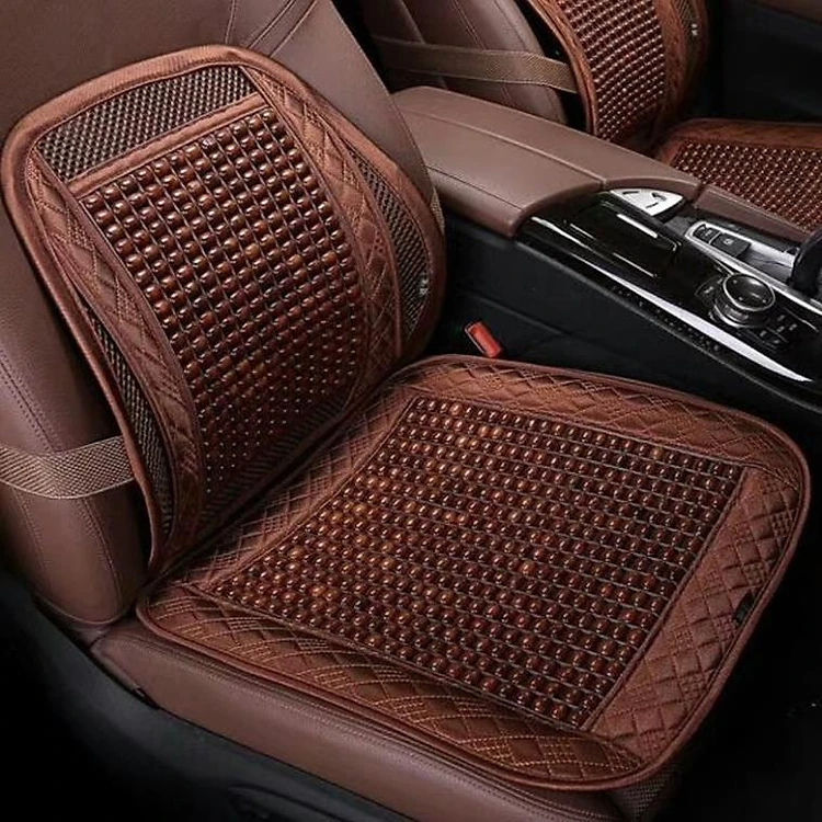 Bộ Tựa Lưng Và Lót Ghế Ô Tô Có Hạt Gỗ Masage Hàng Cao Cấp Đủ Mầu