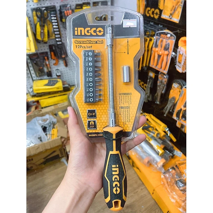 BỘ TUỐC NƠ VÍT ĐA NĂNG 12 CHI TIẾT INGCO AKSDFL1208 - HÀNG CHÍNH HÃNG