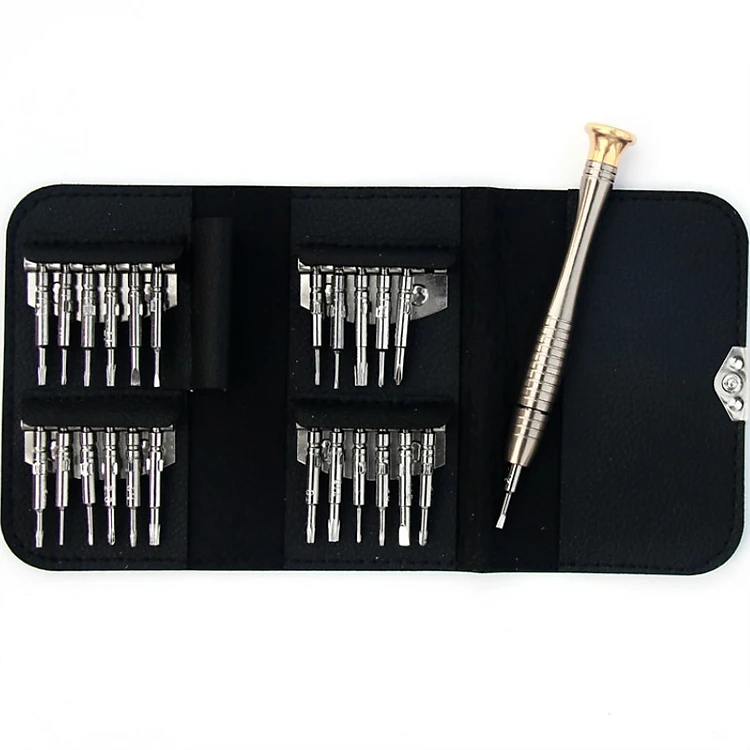 Bộ tuốc nơ vít mũi sửa điện thoại máy tính 25 in 1 hỗ trợ bạn rất nhiều trong công việc sửa chữa đặc biệt các đồ linh kiện điện tử nhỏ như đồng hồ, điện thoại, máy ảnh, tivi, radio, đầu thu, Các đầu tua vít được gia công bằng loại thép có độ bền cao, chống gỉ sét. Có thể dùng để mở các loại vít: đầu dẹt, tam giác, lục giác, 3 cạnh, 4 cạnh, 5 cạnh và 6 cạnh, mỗi dạng đều có đủ các cỡ từ lớn đến nhỏ có thể thay đổi dễ dàng.
