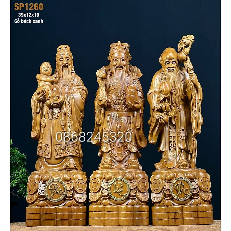 Bộ tượng phật tam đa phúc lộc bằng gỗ bách xanh thơm nức kt cao 40×12×10cm