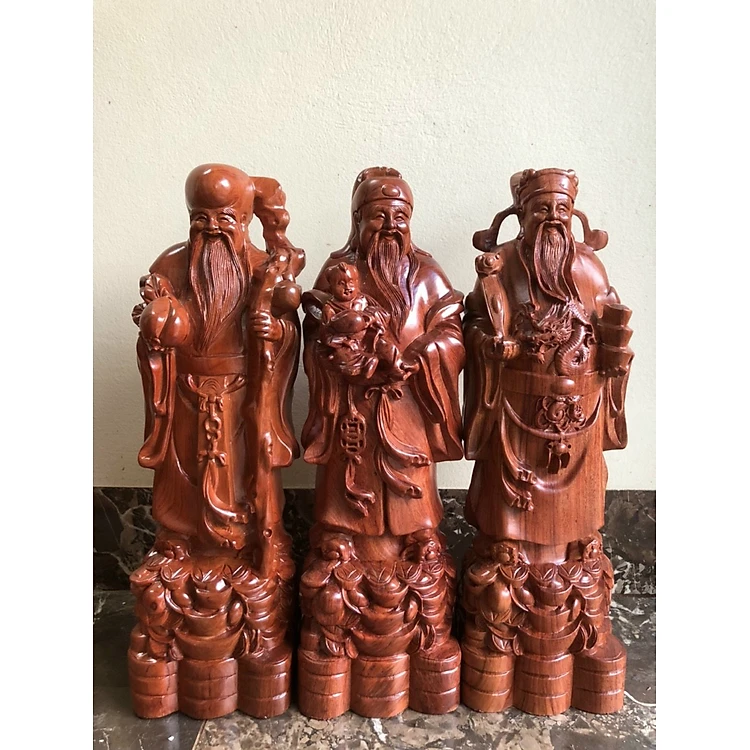 Bộ tượng phật tam đa phúc lộc thọ bằng gỗ hương đá kt 30×11×9cm