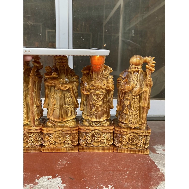 Bộ tượng phật tam đa phúc lộc thọ bằng gỗ huyết long mọng dầu đẹp long lanh kt cao 20cm