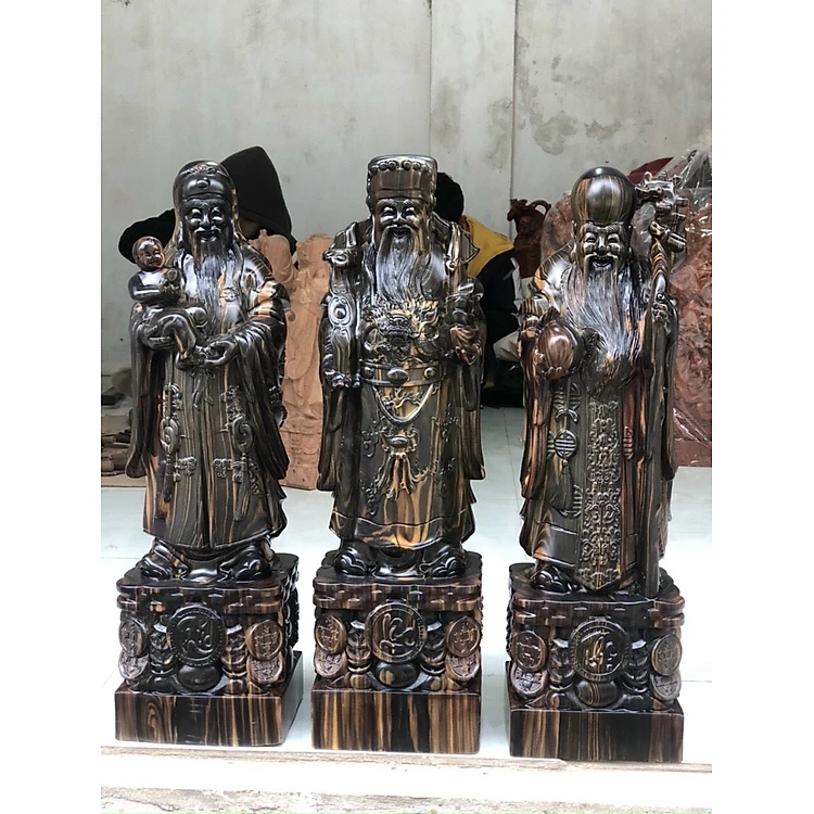 Bộ tượng phật tam đa phúc lộc thọ bằng gỗ mun hoa kt cao 50×15×13cm