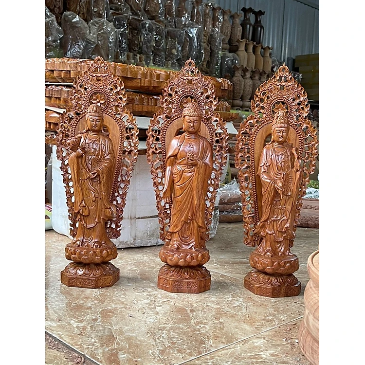 Bộ tượng phật tam thánh bằng gỗ hương kt cao 40 đá cao