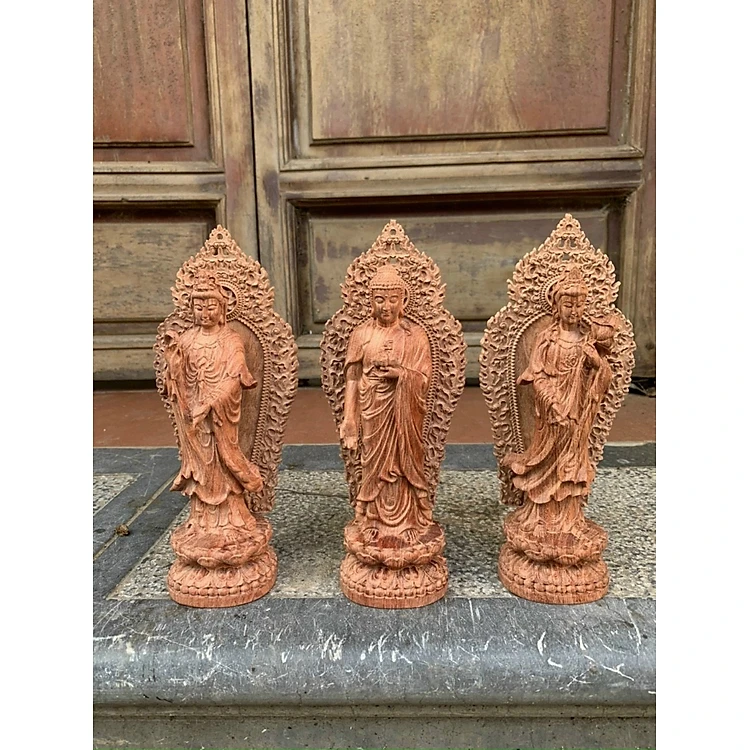 Bộ tượng phật tây phương tam thánh bằng gỗ hương kt cao 30cm