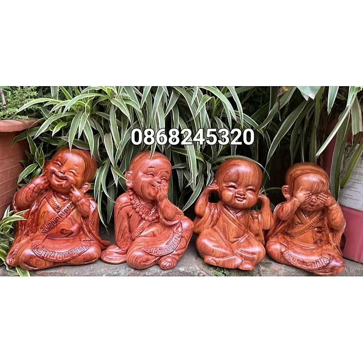 Bộ tượng tứ không bằng gỗ hương đá kt cao 20×16×12cm