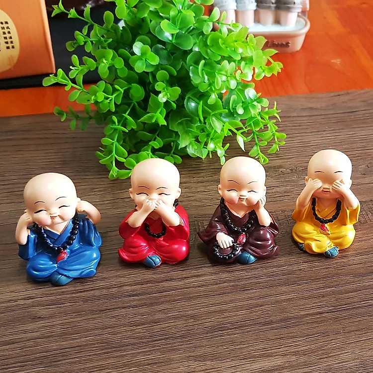 Bộ tượng gồm 4 chú tiểu bịt tai, bịt mắt, bịt miệng, bịt thân lần lượt có tên: