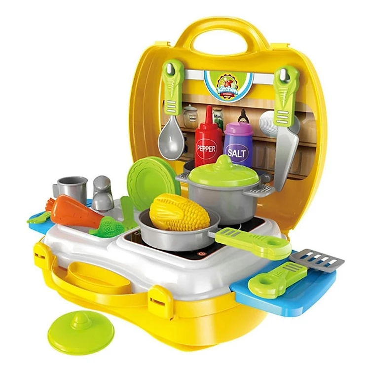 Với các thiết kế được mô phỏng giống thật bé sẽ tự vào bếp nấu ăn cho chính mình. Bộ đồ chơi bao gồm: xoong nồi, chảo, vá, muỗng, rau củ Sản phẩm được thiết kế sinh động, nhiều màu sắc, kích thích sự phát triển thị giác, kích thích sự vận động, khéo léo, phát triển tư duy và trí tưởng tượng của bé.