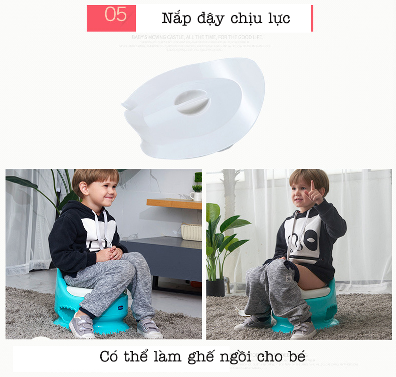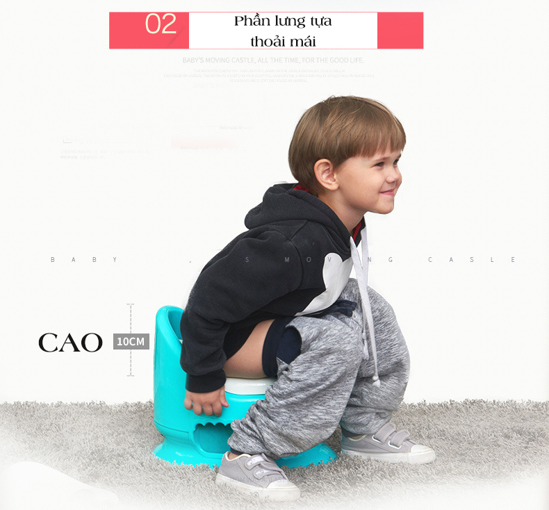 - Bô có thiết kế giống với một chiếc ghế ngồi, kết hợp độ cao phù hợp và phần tựa lưng phía sau, cho bé tư thế ngồi ổn định và thoải mái tối đa khi tập dùng bô.