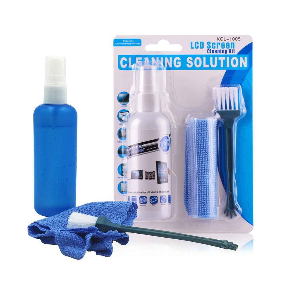 Bộ sản phẩm gồm các dụng cụ: cọ, khăn lau chuyên dụng, nước rửa màn hình.
