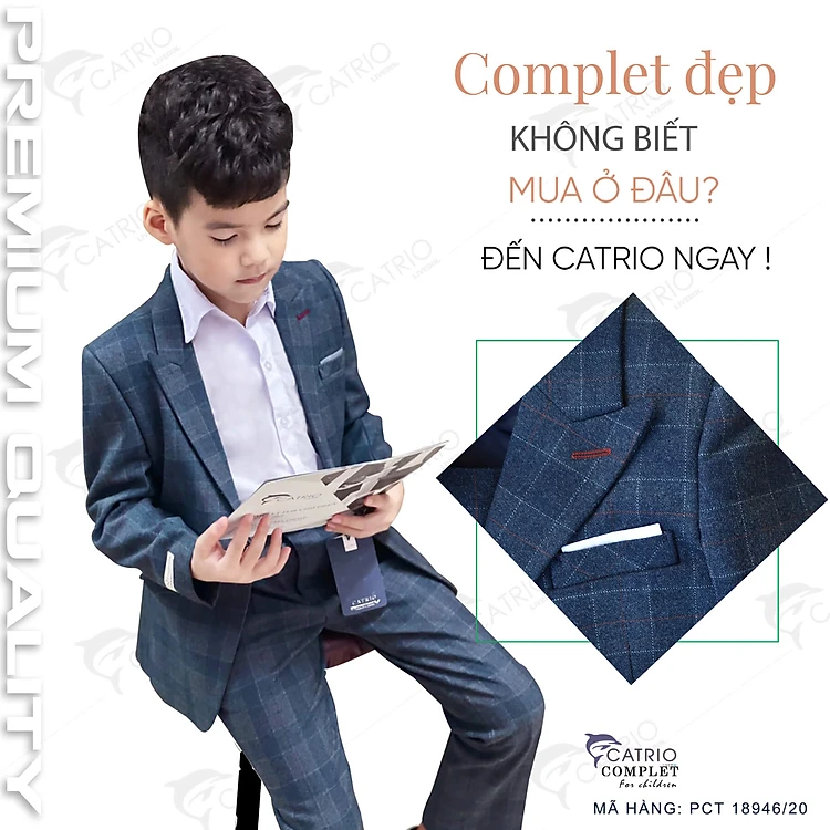 BỘ VEST TRẺ EM CATRIO PCT18946/20 là bộ suit bé trai từ 2 tuổi _ 7 tuổi (11KG .. 28KG), gồm 3 chi tiết ÁO VEST+QUẦN DÀI+ÁO GHILE GILET, vải dạ mềm mượt hoạ tiết kẻ chìm sang trọng bậc nhất trong tiệc cưới hỏi biểu diễn dạ hội
