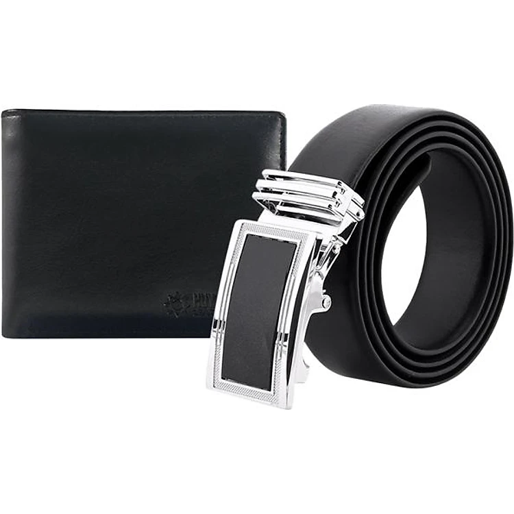 Bộ Ví & Thắt Lưng Nam Da Bò Huy Hoàng HT2102-HT4111 (23 x 11,5 cm) - Đen