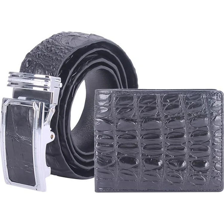 Bộ Ví & Thắt Lưng Nam Da Cá Sấu Gai Đuôi Huy Hoàng HT2207-HT4210 (23 x 11,5 cm) - Đen