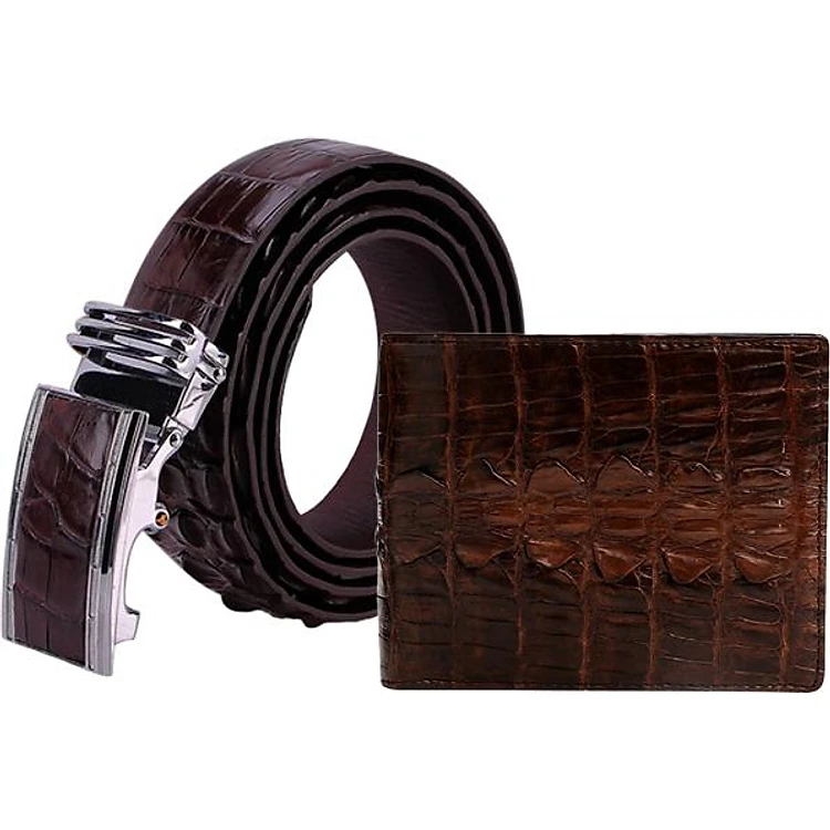 Bộ Ví & Thắt Lưng Nam Da Cá Sấu Gai Đuôi Huy Hoàng HT2242-HT4245 (23 x 11,5 cm) - Nâu Đất