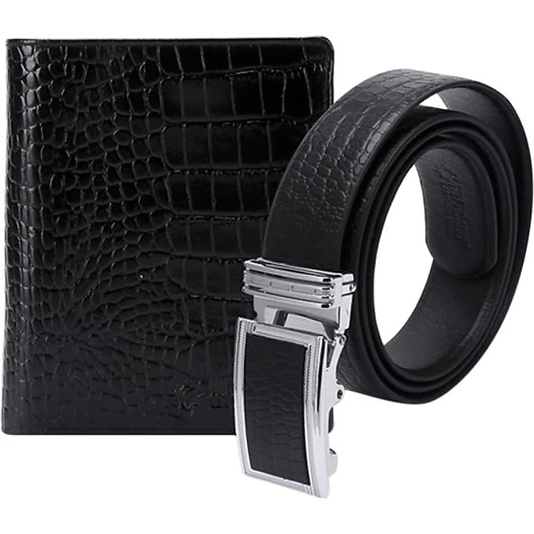 Bộ Ví & Thắt Lưng Nam Vân Cá Sấu Huy Hoàng HT2120-HT4114 (23 x 11,5 cm) - Đen
