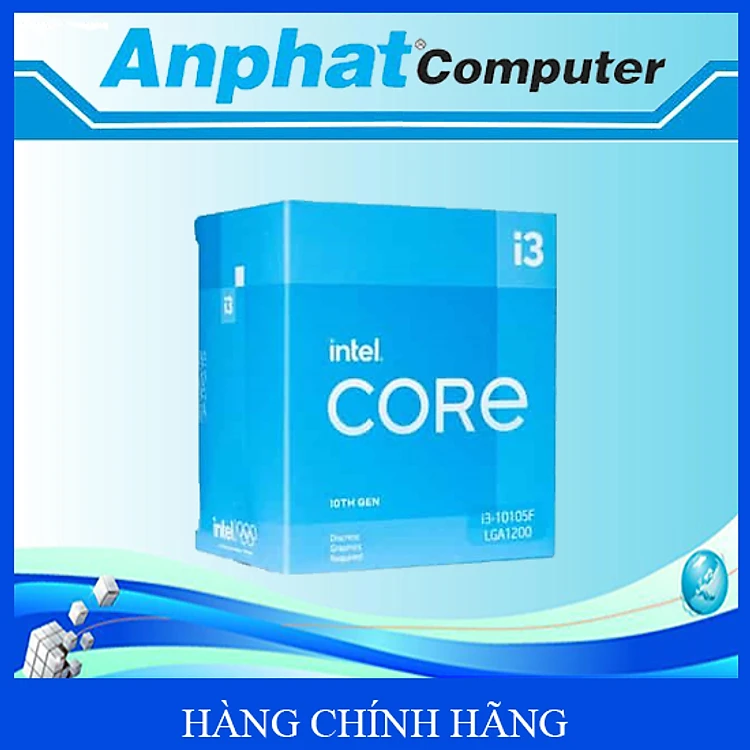Bộ vi xử lý CPU Intel Core i3 10105F (3.7GHz turbo up to 4.4GHz, 4 nhân 8 luồng, 6MB Cache, Socket 1200) - Hàng Chính Hãng