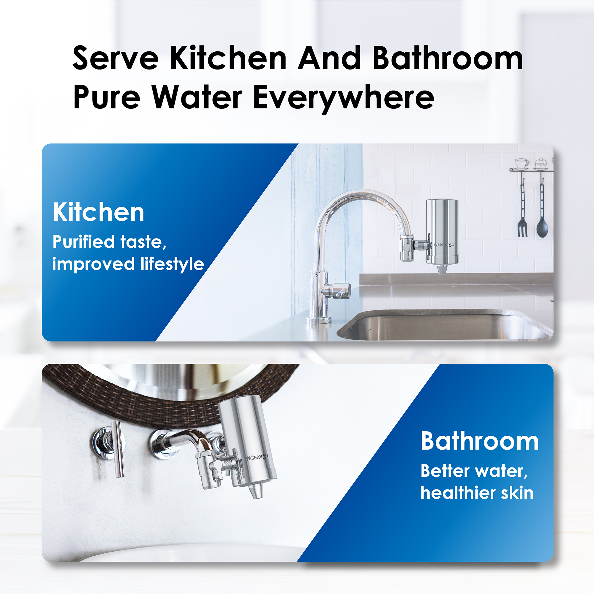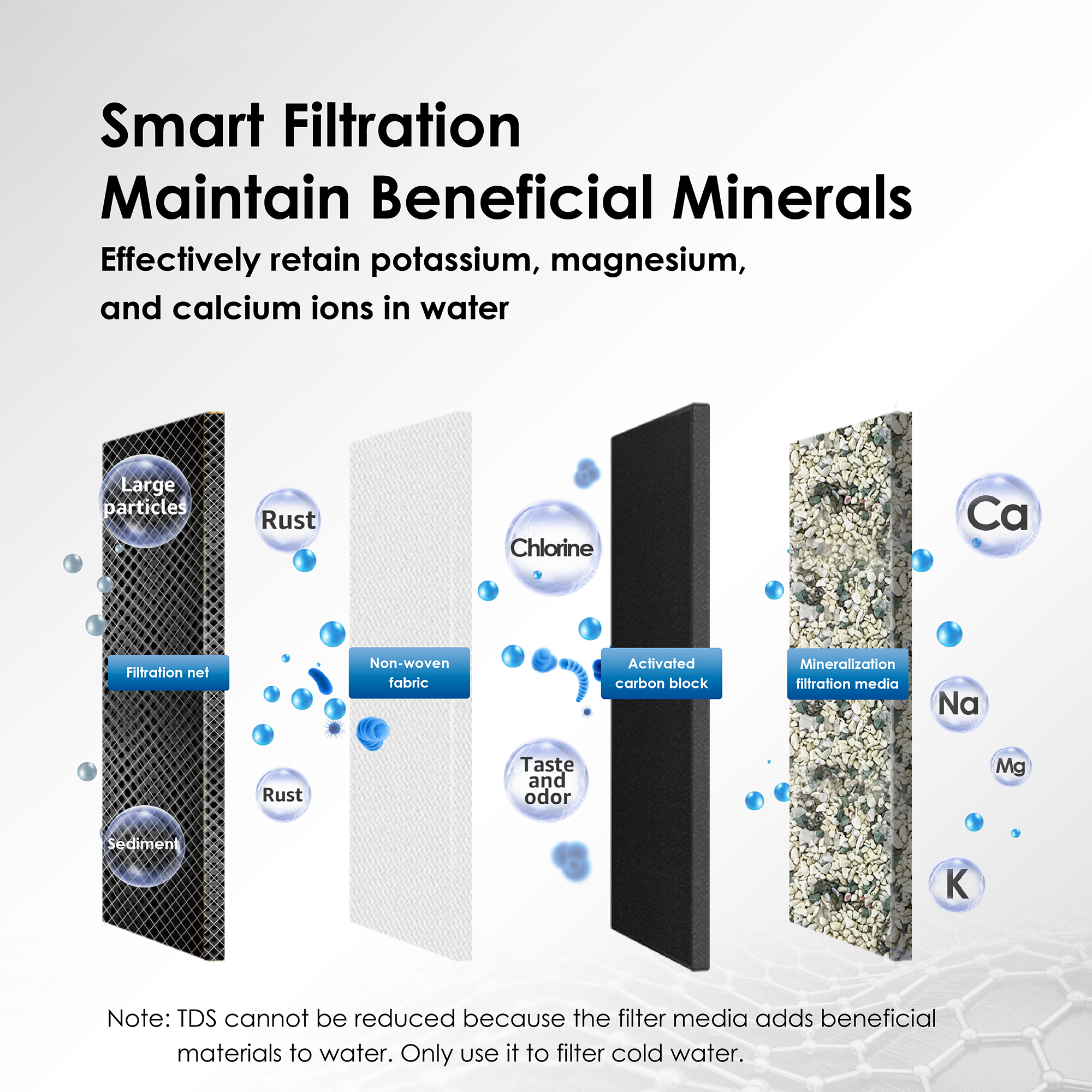 Chức năng: Lọc nước tại vòi với khối than hoạt tính giúp bổ sung và bù khoáng chất cho cơ thể