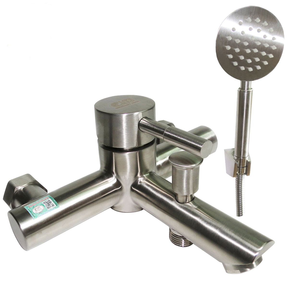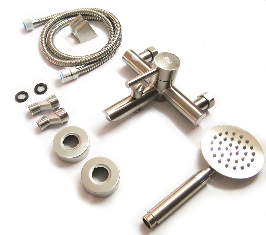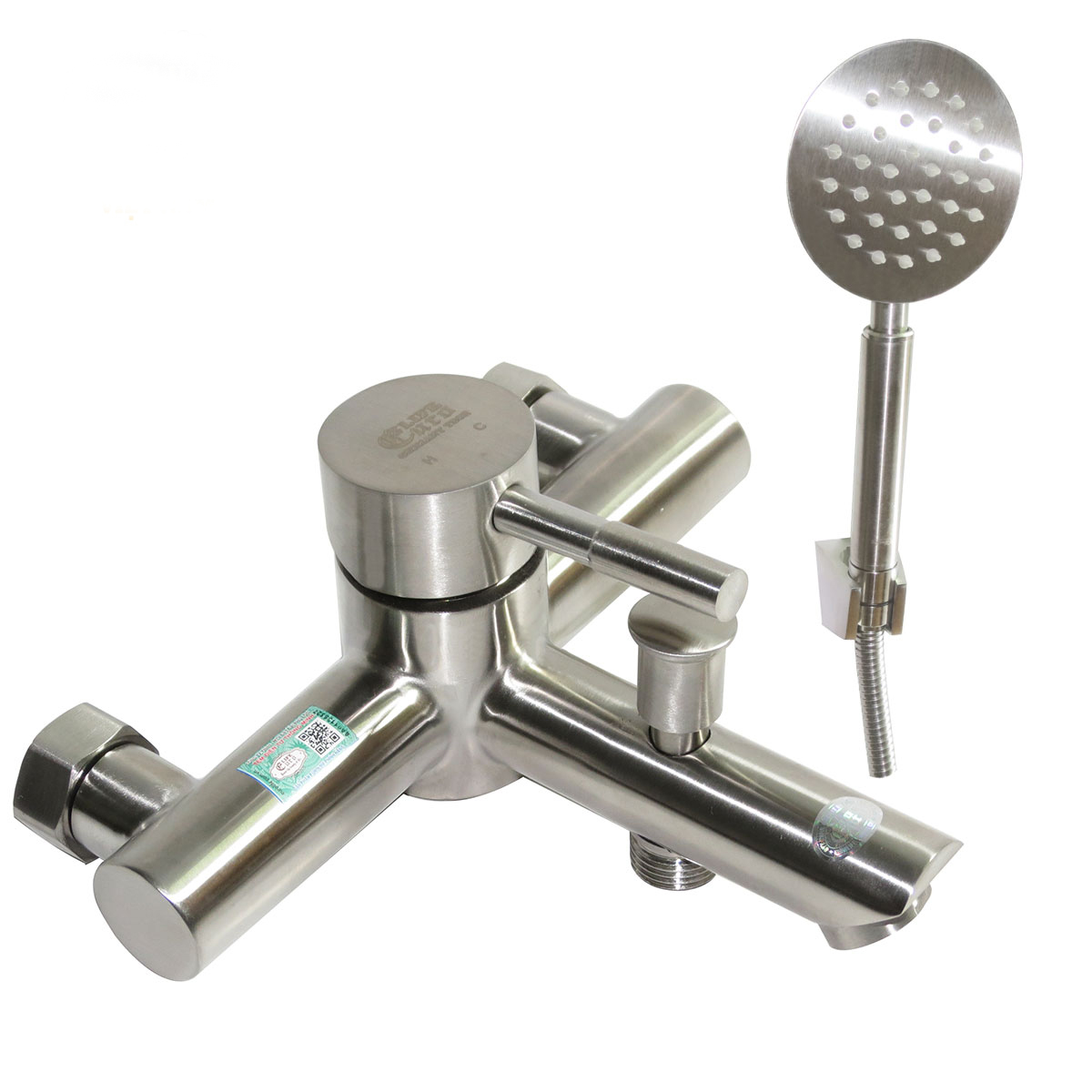 Bộ sản phẩm đi kèm tay sen tròn bằng Inox SUS304 cùng dây sen dài 150cm, chịu áp cao