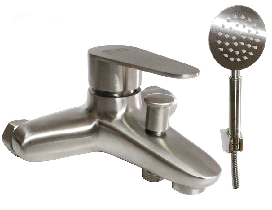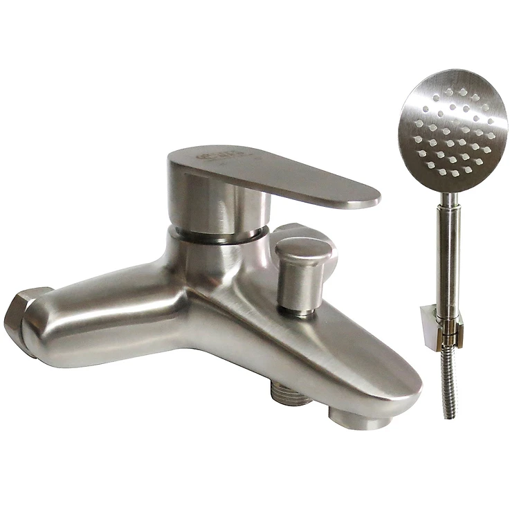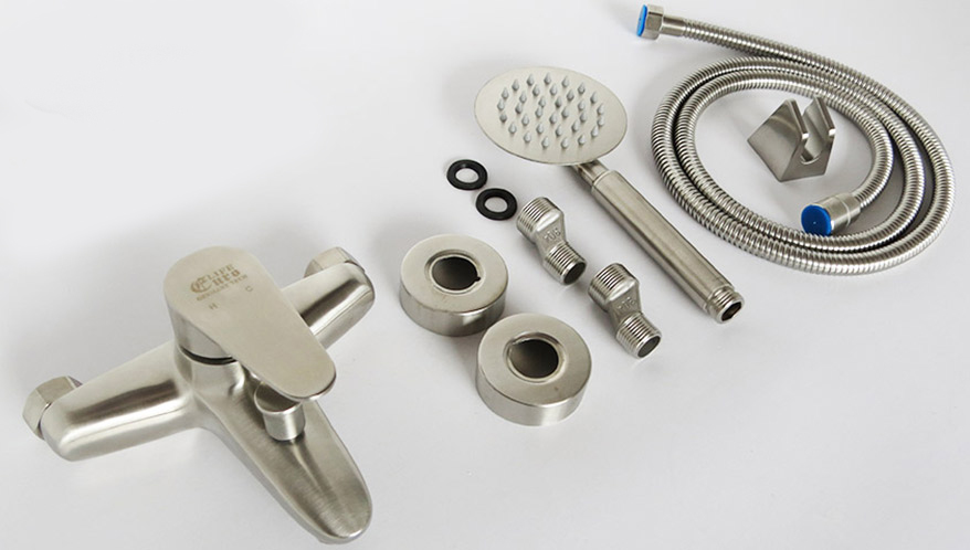 Bộ sản phẩm đi kèm tay sen tròn bằng Inox SUS304 cùng dây sen dài 150cm, chịu áp cao