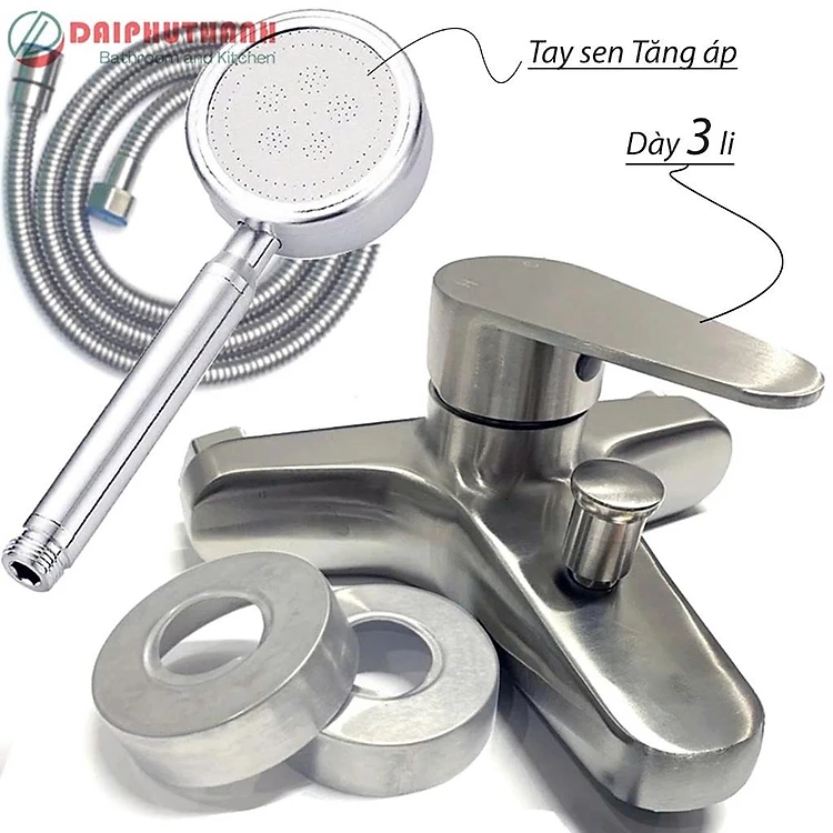 Bộ Vòi Sen Tắm Nóng Lạnh KZ-SV02TD Inox SUS304 - Đủ bộ gồm củ sen, tay sen, dây và gác sen,..