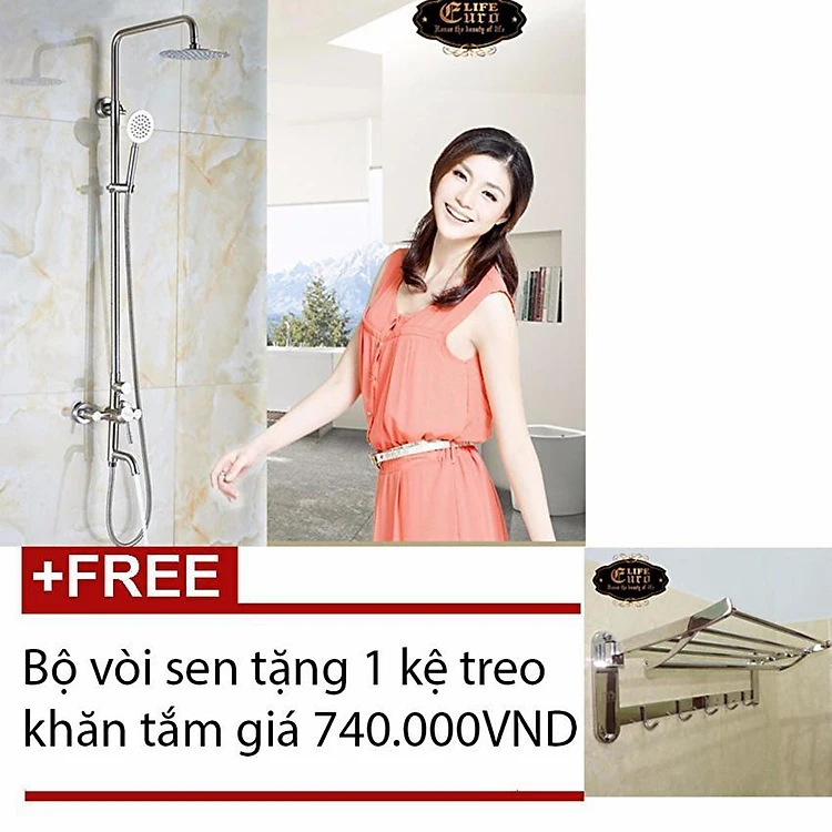 Bộ vòi sen tắm đứng INOX nóng lạnh EL-S909 (Trắng bạc)+Kệ treo khăn tắm đa chức năng Eurolife EL-B7