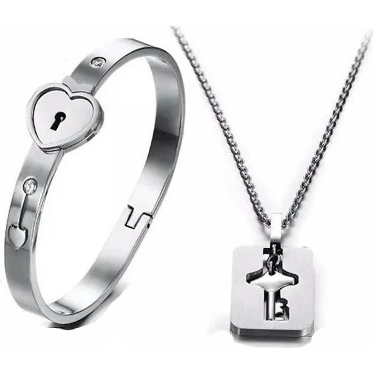 Bộ vòng tay ổ khóa và dây chuyền chìa khóa