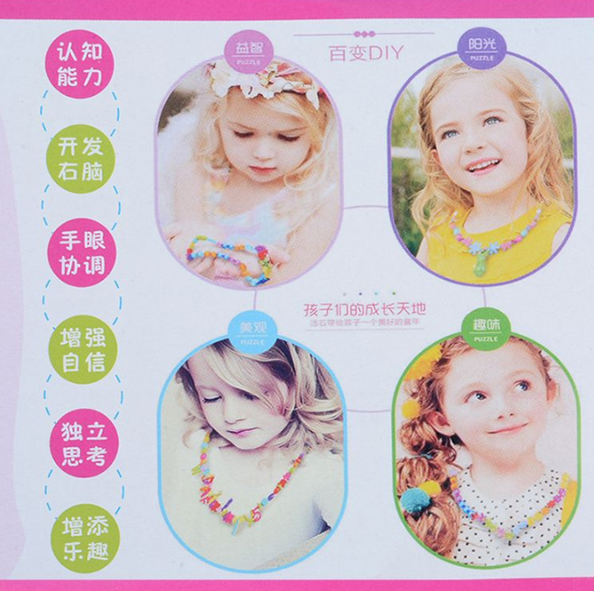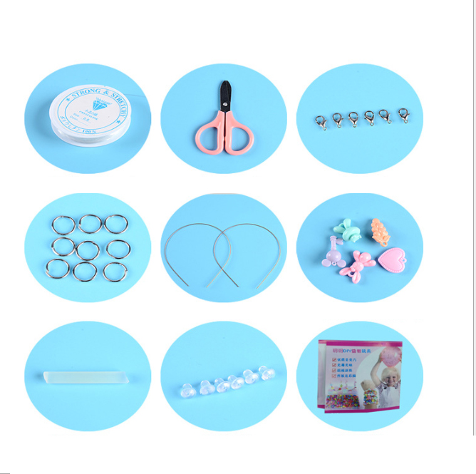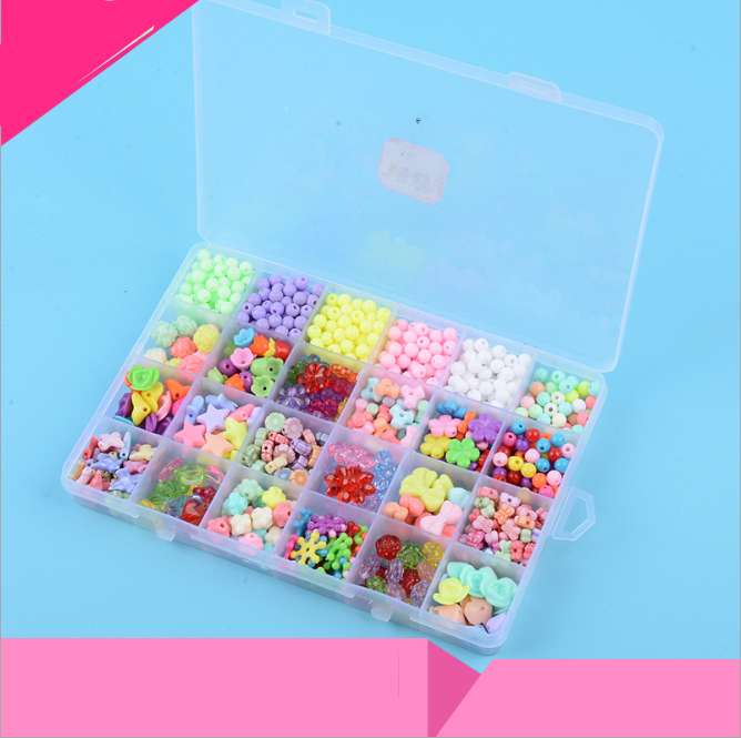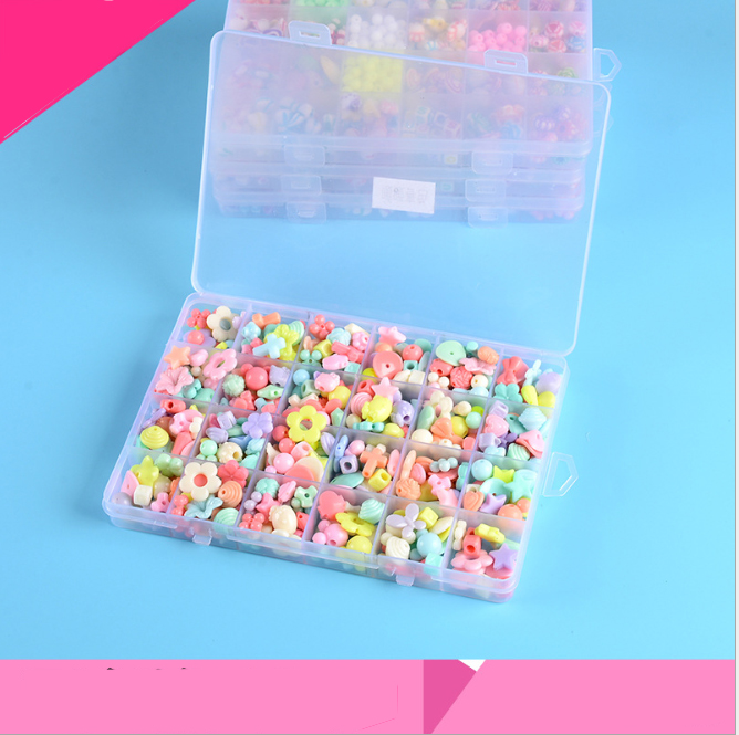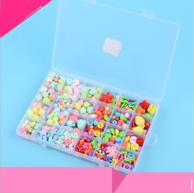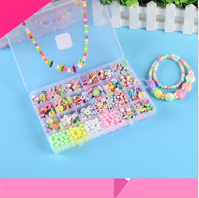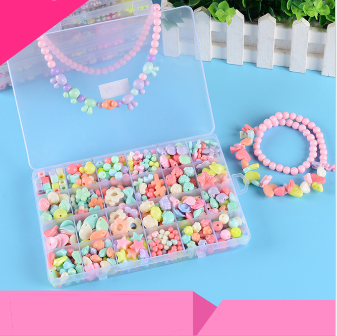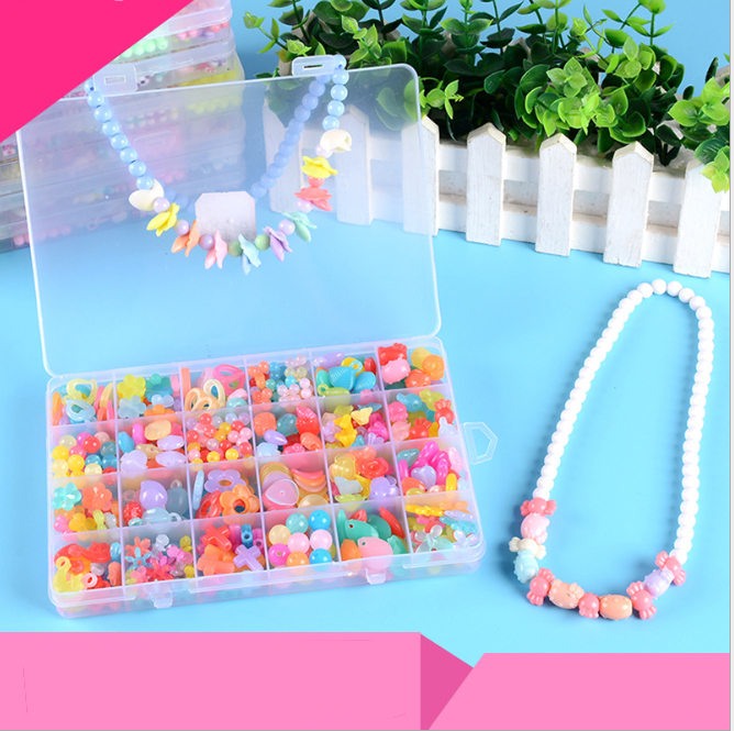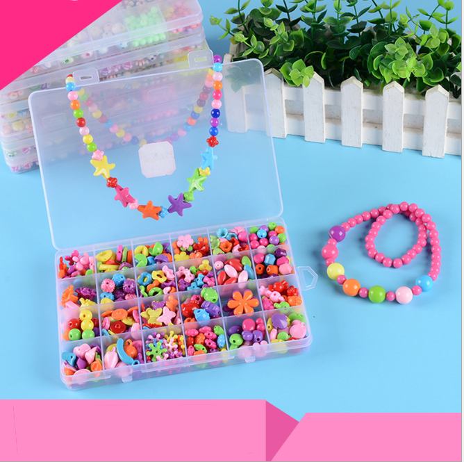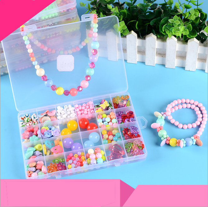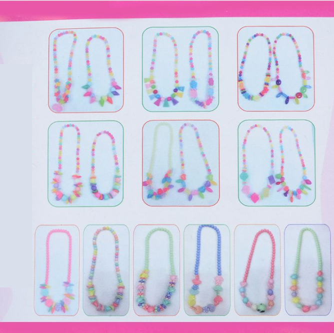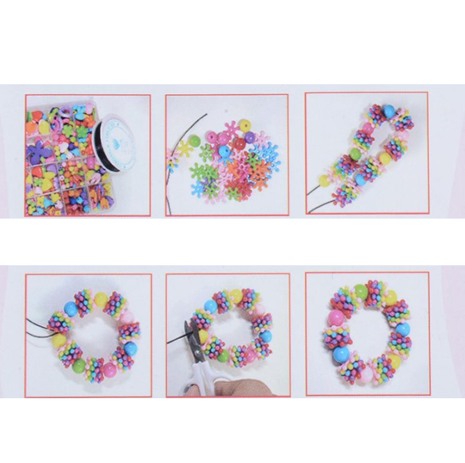 Bộ vòng tay- vòng cổ- Bờm cho bé tự làm hộp chữ nhật (Có kèm vật liệu như dây, khóa vòng...)