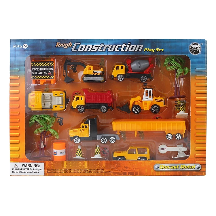 - Bộ 7 xe công trình gồm các xe :xe cẩu, xe bồn, xe tải, xe ủi đất, cây , biển báo...v...v