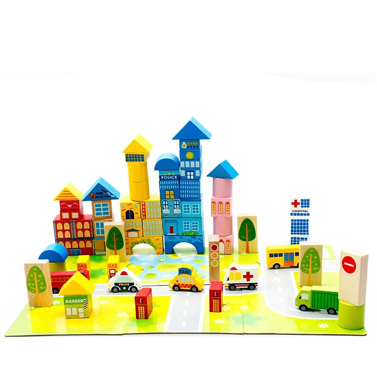 Bộ xếp gỗ thả hình khối thành phố của bé DX36 đồ chơi giáo dục