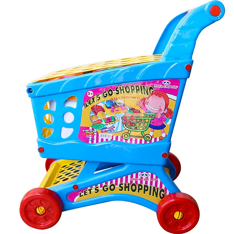Bao bì thiết kế dạng xe đẩy, giống xe đẩy hàng siêu thị, giúp bé có thể đẩy đi chơi.
