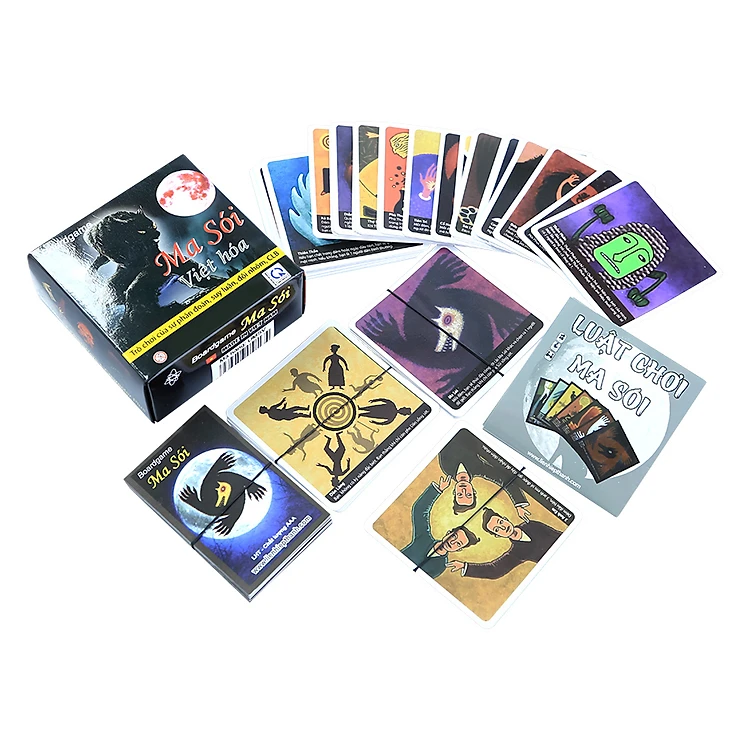 Boardgame Ma Sói Việt Hóa LHT UMSV với luật chơi độc đáo xoay quanh những lá bài cơ bản và các nhân vật hoàn toàn mới cộng thêm các lá bài sự kiện đang thu hút sự quan tâm đặc biệt của trẻ em và người lớn. Các nhân vật như thiên sứ, chị em sinh đôi, kịch sĩ, sói trắng, sói trùm,... hứa hẹn sẽ đem đến cho bạn một kinh nghiệm mới mẻ trong một game ma sói quen thuộc.