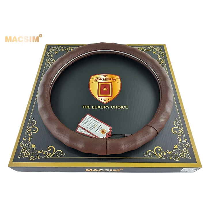 Bọc vô lăng cao cấp Macsim mã 8890 màu coffee - Chất liệu da thật 100%, khâu tay thủ công size M