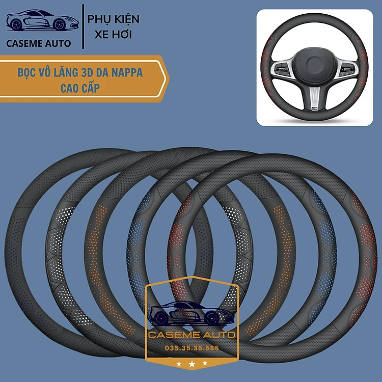 Bọc Vô Lăng Ô Tô 3D Da Nappa Cao Cấp – Siêu Mỏng, Thoáng Khí, Chống Trơn Trượt - Hàng Nhập Khẩu