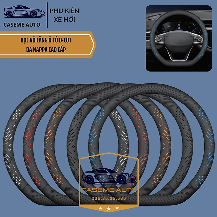 Bọc Vô Lăng Ô Tô D-Cut Da Nappa Cao Cấp 3D Siêu Mỏng Thoáng Khí Chống Trơn Trượt - Hàng Nhập Khẩu