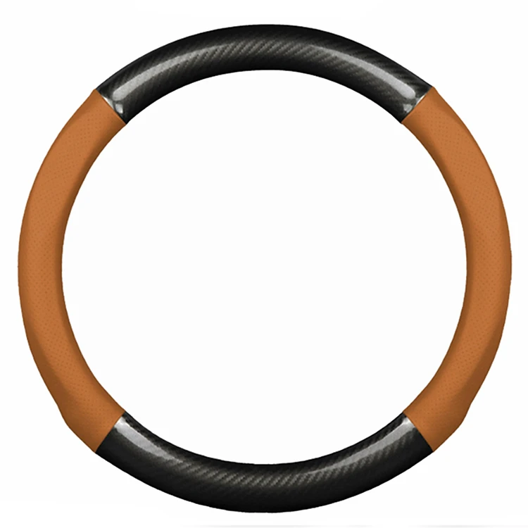 Bọc vô lăng TTAUTO cho xe ô tô từ 4 đến 7 chỗ chất liệu da vân carbon cao cấp (Đen-Nâu)