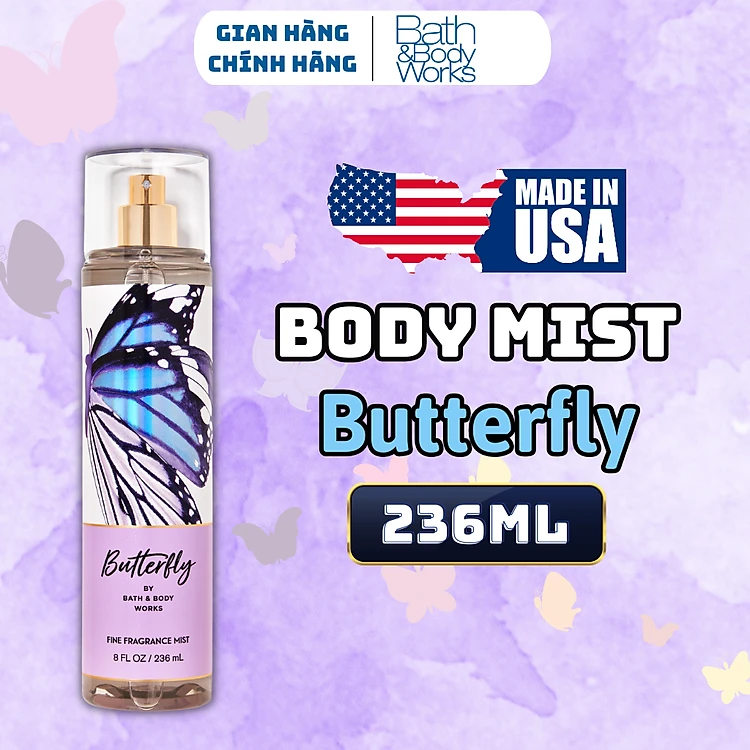 Body Mist Bath And Body Works Nam Nữ Chính Hãng Butterfly, Xịt Thơm Body Toàn Thân Hương Nước Hoa 236ml