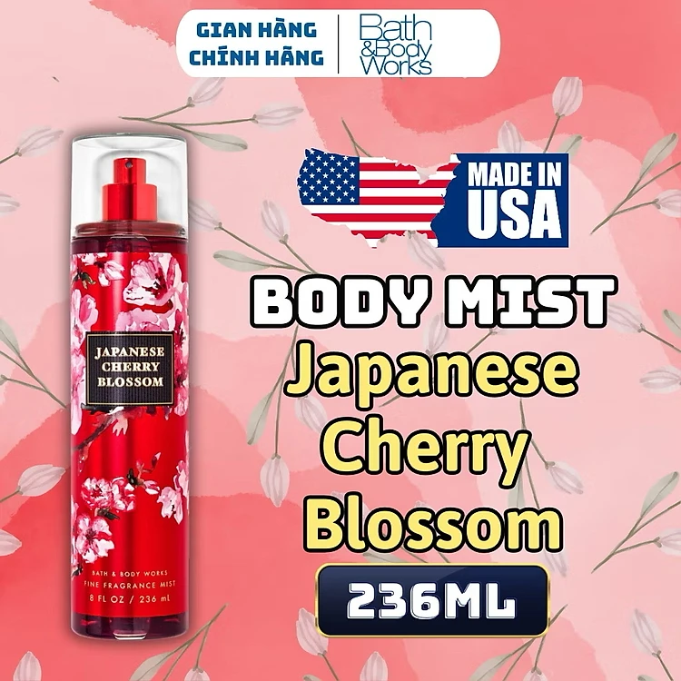 Body Mist Bath And Body Works Nam Nữ Chính Hãng Japanese Cherry Blossom, Xịt Thơm Body Toàn Thân Hương Nước Hoa 236ml