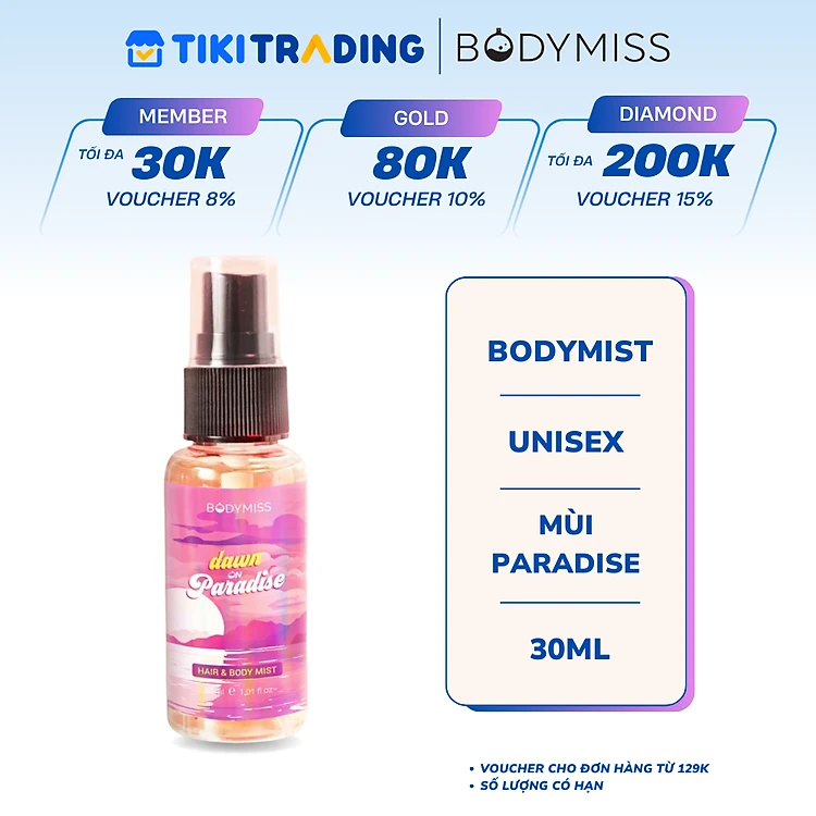 [MUA 2 TẶNG 1]Bodymist Nam Nữ Toàn Thân Lưu Hương 6 Giờ - Nước Hoa Hẹn Hò BODYMISS 30ml (Chai)