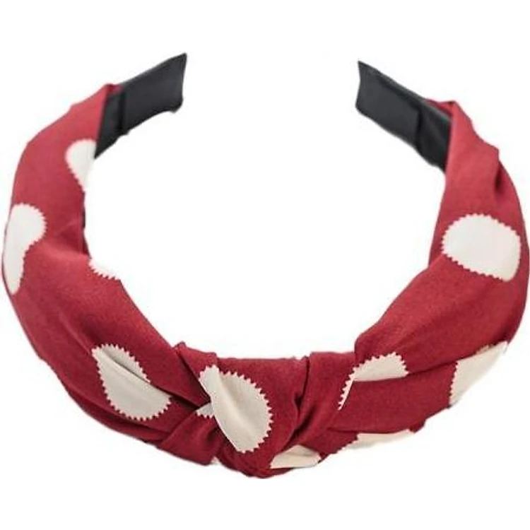 Bờm cài tóc turban nữ BN24A bản to đỏ chấm bi trắng