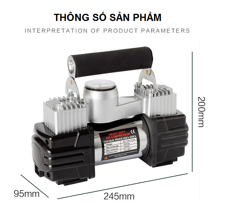 Bơm hoạt động bằng nguồn 12V lấy trực tiếp từ nguồn điện ắc quy, rất tiện lợi khi sử dụng.