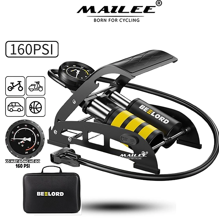 Bơm Đạp Chân 2 Nòng Xilanh BEELORD J54B-01 10 Bar/160 PSI Bơm Chất Lượng Cao Cho Xe Đạp, Xe Máy, Xe Ô tô, Xe Hơi Đa Năng Xếp Gọn (Tặng Kèm 3 Chốt Chân, Hộp đựng bơm) - Mai Lee