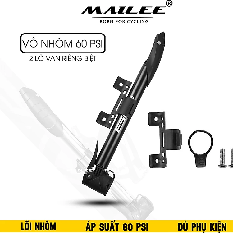 Bơm Xe Đạp Cầm Tay Bơm Lốp Xe Đạp ESL-60P Hợp Kim Nhôm, Bơm Lốp Xe Đạp gắn sườn xe 60 Psi Nhỏ Gọn 2 đầu van riêng (cho van mỹ và van nhọn) - Mai Lee