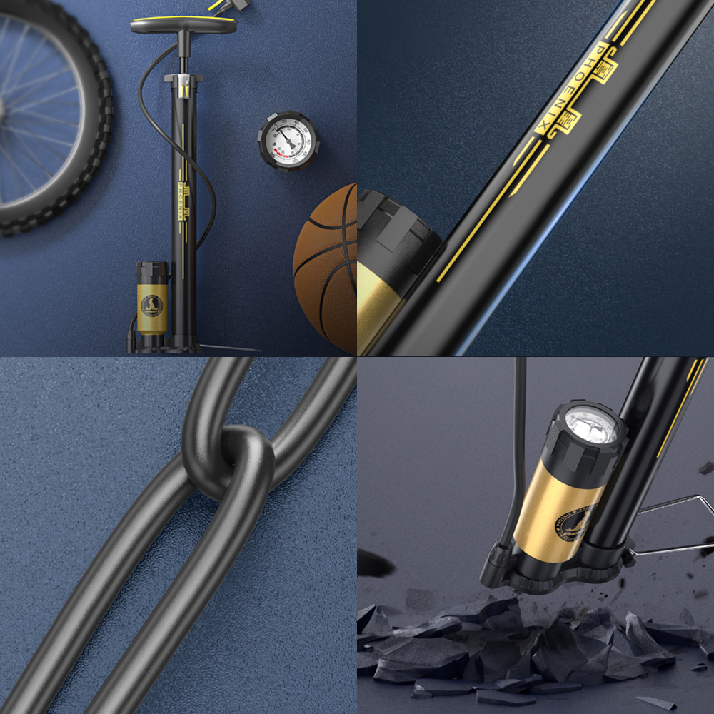 Đầu bơm dễ thay thế,có sẵn đầu 2 trong 1 vừa bơm xe đạp và xe máy, ô tô
