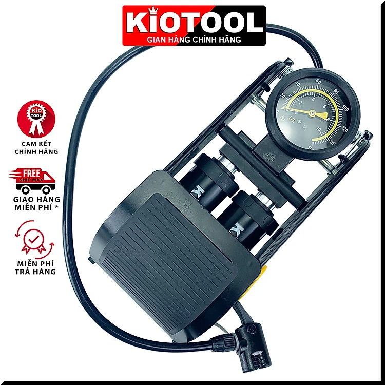 Bơm xe máy đạp chân Kiotool KP02 Bassic loại 2 xi lanh - Đồ bơm xe máy xe đạp ô tô nhỏ gọn áp lực lớn 8 bar có thể đút cốp xe máy