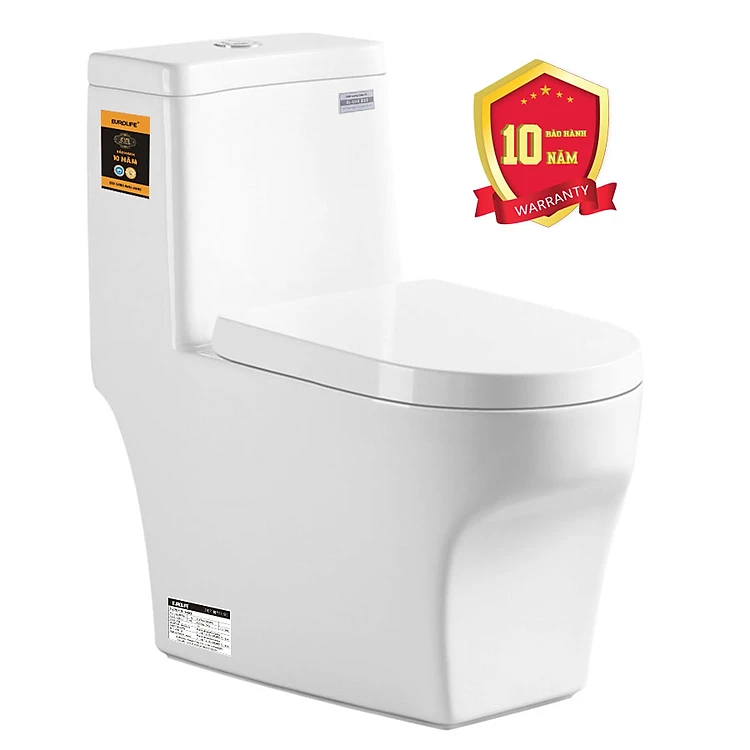 Bồn cầu 1 khối cao cấp tiêu chuẩn xuất Châu Âu, men Nano tuyết bóng sáng, nắp đóng siêu êm, 2 chế độ xả Eurolife EL-LUX 033 (Trắng)