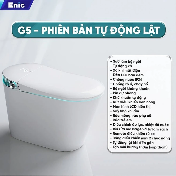 Bồn Cầu Thông Minh EVA Tự Động Đóng Mở Nắp, Toilet Điện Tử Xịt Rửa Tự Động và Bồn Cầu Xả Nước Tự Động (Mã G5)