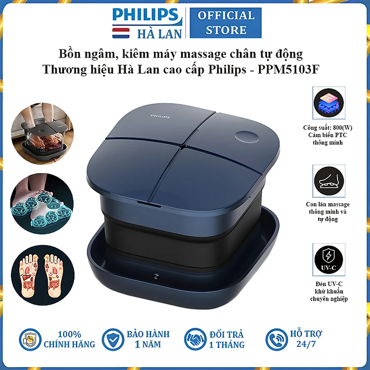 Bồn ngâm chân, kiêm máy massage chân tự động thương hiệu Philips PPM5103F - Hàng chính hãng